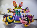 As the theme of this kiddie rides is happy honeybee, so colorful flowers and lovely bee cabin are designed for this amusement park ride to attract children. When the rides work, passengers can not only rotate but also fly ups and downs by pressing the self-control button in the cabin. At the same time they can regard the small honeybees, in front of them as enemy honeybee and shoot them down. Children will have the feeling that they have become honeybees and fly at a beautiful garden, very interesting and exciting.