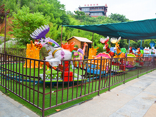 This Horse Racing Series Little Train Ride is a new type of amusement park rides for kids, which drives on the interchange track. The amusement ride is marked with a modern interchange track, with colorful LED lights, sound, and bright children cartoon paintings, in order to let the children experience the feeling of time and space over the mountains and leap. The material is the best quality glass fiber reinforced plastics (FRP) and thick steel to ensure long service.